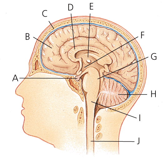 释义 brain AHD[brān] D.J.[breɪn]K.K.[bren]n.(名词)A. pituitary glandB. cerebrumC. skullD. corpus callosumE. thalamusF. hypothalamusG. ponsH. cerebellumI. medullaJ. spinal cordCarlyn Iverson
