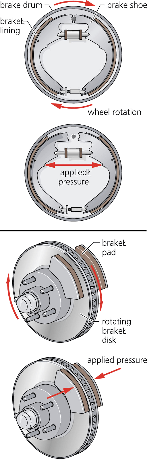 brake 1 AHD[brāk] D.J.[breɪk]K.K.[brek]n.(名词) top: drum brake systembottom: disc brake systemPrecision Graphics- A device for slowing or stopping motion, as of a vehicle, especially by contact friction.闸:使运动减速或停止的装置,如汽车的减速装置,尤指通过接触摩擦