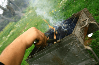 A brazier being used outdoors.