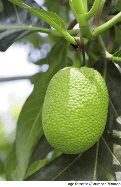 bread·fruit AHD[brĕdʹfro͞ot'] D.J.[ˈbredˌfruːt]K.K.[ˈbrɛdˌfrut]n.(名词) breadfruitArtocarpus altilis- A Malaysian evergreen timber tree(Artocarpus altilis) having large, round, yellowish, edible fruits. 面包果(树):一种马来西亚的常青木材树木(麦丐包果 木波罗属) ,结有大而圆的淡黄色可食果实