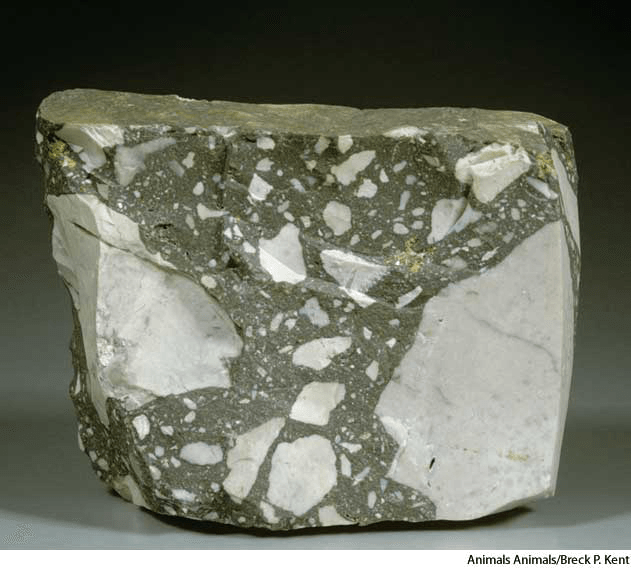 brec·ci·a AHD[brĕchʹē-ə, brĕchʹə, brĕshʹ-] D.J.[ˈbretʃiːə, ˈbretʃə, ˈbreʃ-]K.K.[ˈbrɛtʃiə, ˈbrɛtʃə, ˈbrɛʃ-]n.(名词) breccia- Rock composed of sharp-angled fragments embedded in a fine-grained matrix.角砾岩:包含在细粒的母岩中,由尖角的碎石构成的岩石