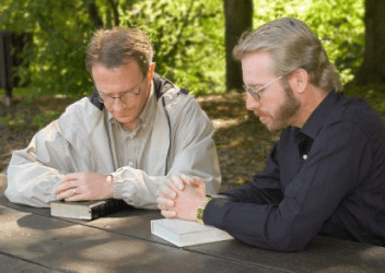 Brethren praying together.