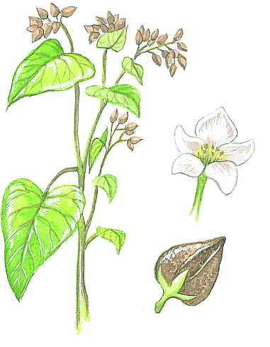 2. The edible fruits of this plant, used either whole or ground into flour.荞麦果:这种植物可吃的果实,或整块吃或磨成粉