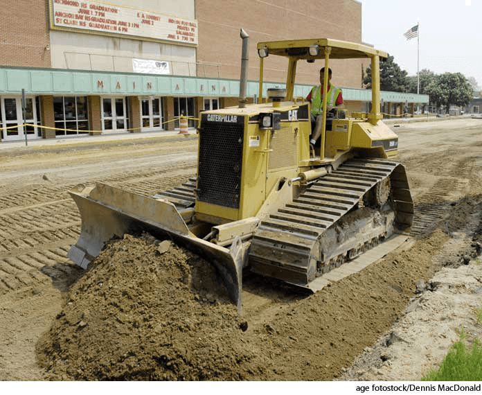 1. A heavy, driver-operated machine for clearing and grading land, usually having continuous treads and a broad hydraulic blade in front.推土机:用来清除和平整土方的重型的,驾驶操作的机器,常有连续的履带,前部有宽的液压铲刀
