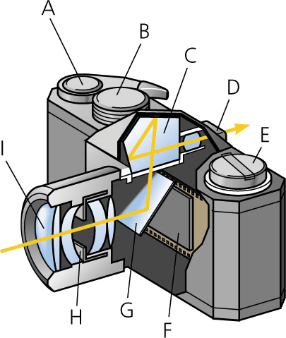 释义 cam·er·a AHD[kămʹər-ə, kămʹrə] D.J.[ˈkæmərə, ˈkæmrə]K.K.[ˈkæmərə, ˈkæmrə]n.(名词)A. film advance leverB. shutter speed dialC. prismD. viewfinderE. rewind leverF. filmG. mirrorH. diaphragmI. lensPrecision Graphics