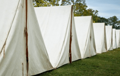 Tents in a re-enactment of a Revolutionary War soldiers camp.