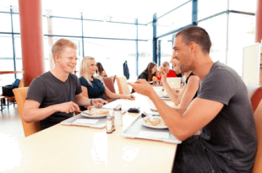 Students eating in the school canteen.