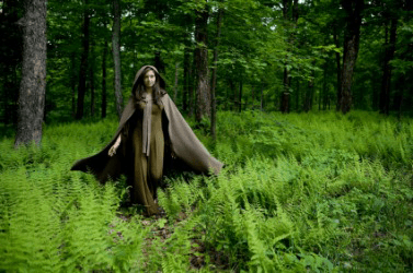A woman wearing a cape.