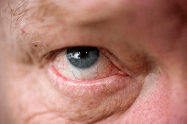 A close up of an eye showing the capillaries.