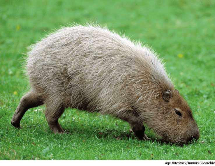- from Tupi capivara, capibara 源自 图皮语 capivara, capibara