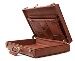 An empty brown case.