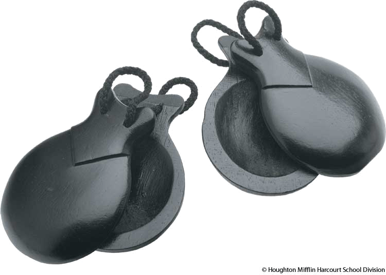 cas·ta·net AHD[kăs'tə-nĕtʹ] D.J.[ˌkæstəˈnet]K.K.[ˌkæstəˈnɛt]n.Music(名词)【音乐】 castanet- A rhythm instrument consisting of a pair of slightly concave shells of ivory or hardwood, held in the palm of the hand by a connecting cord over the thumb and clapped together with the fingers. Often used in the plural.响板:一对由象牙或硬木制成的有轻微凹形的板子组成的一种节奏乐器,通过一段连在拇指上并和其余手指结合的线绳握在手掌中。通常用作复数