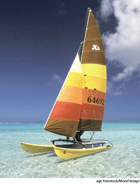 cat·a·ma·ran AHD[kăt'ə-mə-rănʹ] D.J.[ˌkætəməˈræn]K.K.[ˌkætəməˈræn]n.Nautical(名词)【航海】 catamaran- A boat with two parallel hulls or floats, especially a light sailboat with a mast mounted on a transverse frame joining the hulls.双体船:有两个平行的船壳或浮体的小船,尤指桅杆竖在连体船壳的一个横向支架上面的轻型帆船