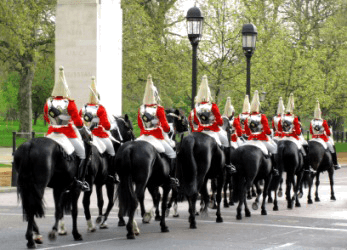 The Royal Horse Guard cavalry at Buckingham Palace.