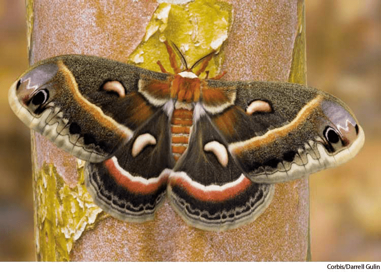 ce·cro·pi·a moth AHD[sĭ-krōʹpē-ə] D.J.[sɪˈkrəʊpiːə]K.K.[sɪˈkropiə]n.(名词) cecropia mothfemale cecropia mothHyalophora cecropia- A large North American silkworm moth(Hyalophora cecropia) having wings with red, white, and black markings. 惜古比天蚕蛾:巨大的北美蚕蛾(惜古比天蚕蛾) ,长着带有红、白、黑斑的翅膀