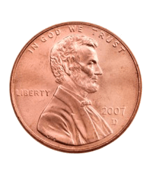A United States penny equal to one cent.