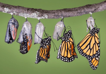A butterfly completing its change from a caterpillar.