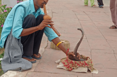 A snake charmer with a cobra snake.