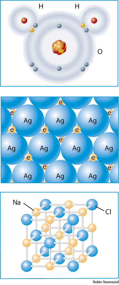 chemical bondn.(名词) chemical bondtop: covalent bonding in a water moleculecenter: metallic bonding in silverbottom: ionic bonding in sodium chloride- Any of several forces or mechanisms, especially the ionic bond, covalent bond, and metallic bond, by which atoms or ions are bound in a molecule or crystal.化学键:使原子或离子结合成分子或晶体的力量或历程,尤指离子键、共价键和金属键