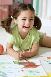A happy child painting.