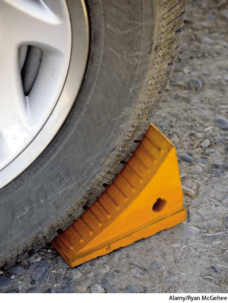 v.tr.(及物动词)chocked, chock.ing, chocks - To fit with or secure by a chock:用塞块塞住或固定:The plane's wheels were chocked and chained down.飞机的轮子被塞上了塞块并用链子固定住了