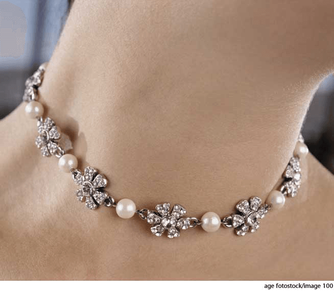 - Something that fits closely around the neck or throat, as:颈饰:紧紧围绕脖子或喉咙的东西,如: