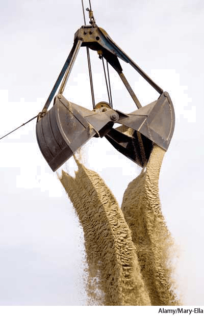 抓斗,挖斗:任何一种具有两个铰接夹爪用来挖泥或铲土的设备