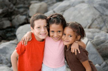 These children are standing very close to each other.