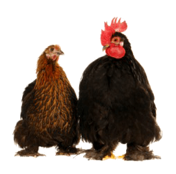 A cock, on the right, with a hen.