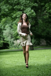 A woman coming towards the camera.