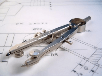 A compass lying on a set of architects drawings.