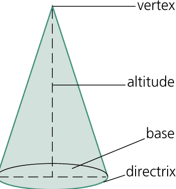 - The surface generated by a straight line, the generator, passing through a fixed point, the vertex, and moving along a fixed curve, the directrix.锥面:由一条直线,即母线,通过一固定点,即顶点,沿一给定曲线,即准线,连续移动而产生的平面