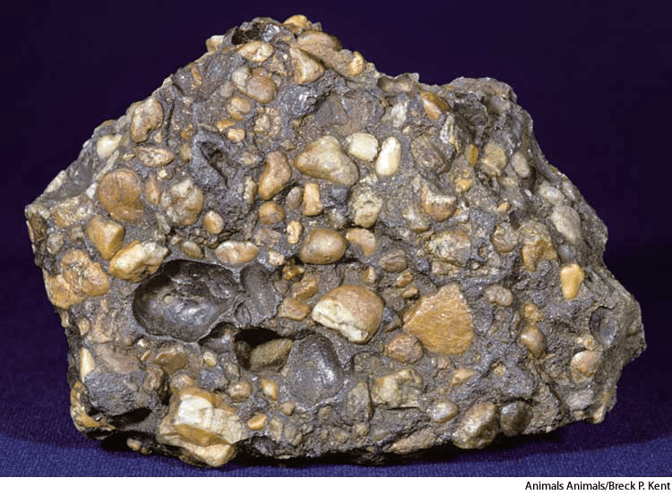 1. Geology A rock consisting of pebbles and gravel embedded in cement.【地质学】 砾岩:由水泥固结的卵石和砾石形成的砾岩