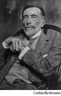 Con·rad AHD[kŏnʹrăd'] Joseph (1857-1924) D.J.[ˈkɒnˌræd]K.K.[ˈkɑnˌræd]NONE(无词性) Joseph Conradphotographed c. 1919- Polish-born British novelist noted as a master of atmosphere and narrative technique. His works includeLord Jim (1900), Heart of Darkness (1902), and Nostromo (1904). 康拉德,约瑟夫:(1857-1924) 波兰裔英国小说家,一位擅长环境描写和叙事技巧的大师。他的作品包括《吉姆老爷》 (1900年)、 《黑暗的心》 (1902年)和 《诺斯罗姆》 (1904年)