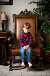 A child being punished as a consequence of his actions.