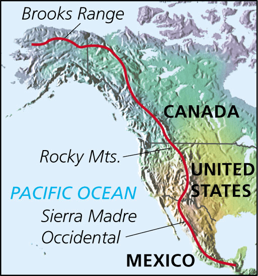 Con·ti·nen·tal Di·vide AHD[kŏn'tə-nĕnʹtl dĭ-vīdʹ] D.J.[ˌkɒntəˈnentl dɪˈvaɪd]K.K.[ˌkɑntəˈnɛntl dɪˈvaɪd]NONE(无词性) Jerry Malone- A series of mountain ridges extending from Alaska to Mexico that forms the watershed of North America. Most of it runs along peaks of the Rocky Mountains and is often called theGreat Divide in the United States. 北美大陆分水岭:从阿拉斯加延伸到墨西哥的一系列山脊,它构成北美大陆的分水线。其中大部分沿落基山脉的山峰分布,在美国常被称为大分水岭