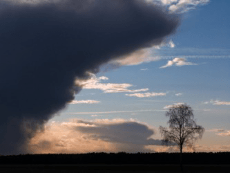 Striking contrast between the clouds and the clear blue sky.
