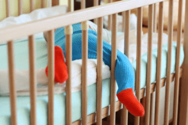 A sleeping baby in his crib.