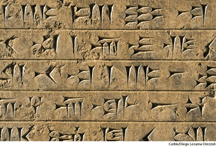 n.(名词)- Writing typified by the use of characters formed by the arrangement of small wedge-shaped elements.楔形文字:以使用由小型楔状元素排列而成的字母为典型的文字