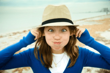 A young girl acting daft.