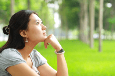 A young woman daydreaming.