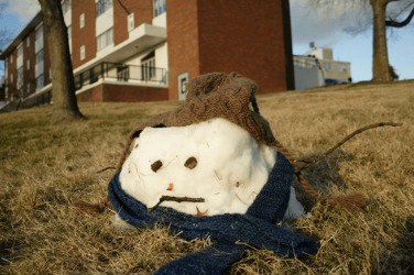 Warm weather has caused a decrease in this snowmans size.