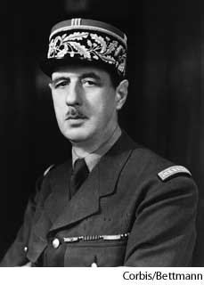 1. French general and politician. During World War II he gained enormous popularity as the leader of Free French forces in exile. Later, after years of self-imposed retirement, he emerged as the first president (1959-1969) of the Fifth Republic and led the country through its turbulent withdrawal from Algeria.戴高乐,查尔斯·安德鲁·约瑟夫·玛丽:(1890-1970) 法国将军和政治家。第二次世界大战中,流亡的戴高乐领导了“自由法国运动”,因此赢得广泛的拥戴。后来经过多年自愿的隐居生活,他成为第五共和国的首任总统(1959-1969年),并率领他的国民从阿尔及利亚浩浩荡荡地撤退