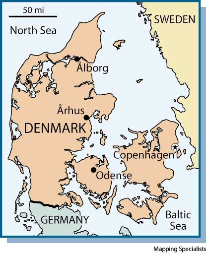 Den·mark AHD[dĕnʹmärk'] abbr.缩写 Den.D.J.[ˈdenˌmɑːk]K.K.[ˈdɛnˌmɑrk]NONE(无词性) Denmark- A country of northern Europe on Jutland and adjacent islands. It was unified in the 10th century by the Viking king Harold Bluetooth (died 985), who converted the people to Christianity. Denmark controlled England briefly in the 11th century and was united with Sweden until 1523 and with Norway until 1814. Copenhagen is the capital and the largest city. Population, 5,112,130.丹麦:欧洲北部的一个国家,建立在日德兰半岛及其邻近的岛上。10世纪斯堪的纳维亚国王哈罗德·布鲁士斯(死于985年)统一该地,并使这儿的人民皈依为天主教徒。该国在11世纪控制着英格兰,直到1523年才与瑞典统一,1814年丹麦与挪威统一。首都哥本哈根是最大的城市。人口5,112,130