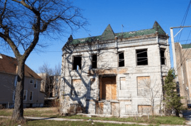 A derelict building.