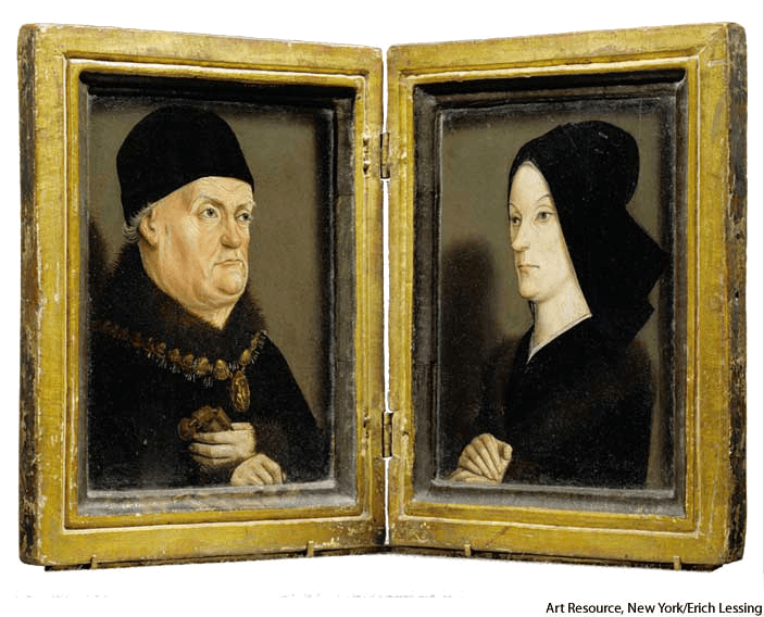 释义 dip·tych AHD[dĭpʹtĭk] D.J.[ˈdɪptɪk]K.K.[ˈdɪptɪk]n.(名词)diptychportraits of René of Anjou(1409-1480) and his secondwife, Jeanne of Laval (1433-1498), by Nicolas Froment(1435?-1486)