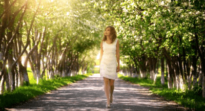 A woman walks alone in a park.