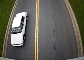 This car is driving along the curb.