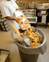 A baker disposes of stale food.