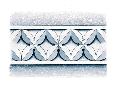 - Architecture A medieval ornament consisting of four leaflike projections radiating from a raised center.【建筑学】 犬牙饰,四叶饰:四片叶状突出物由一凸起中心向四周辐射的中世纪建筑装饰